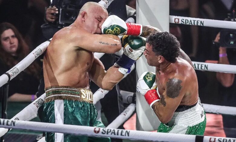 O confronto entre Acelino “Popó” Freitas e Wanderlei Silva, realizado neste sábado (26) no Spaten Fight Night, em São Paulo, terminou de forma tumultuada e muito diferente do que o público esperava. O embate, que deveria durar oito rounds, acabou interrompido no quarto assalto após Wanderlei ser advertido três vezes por condutas antidesportivas, o que garantiu a vitória ao tetracampeão mundial de boxe.